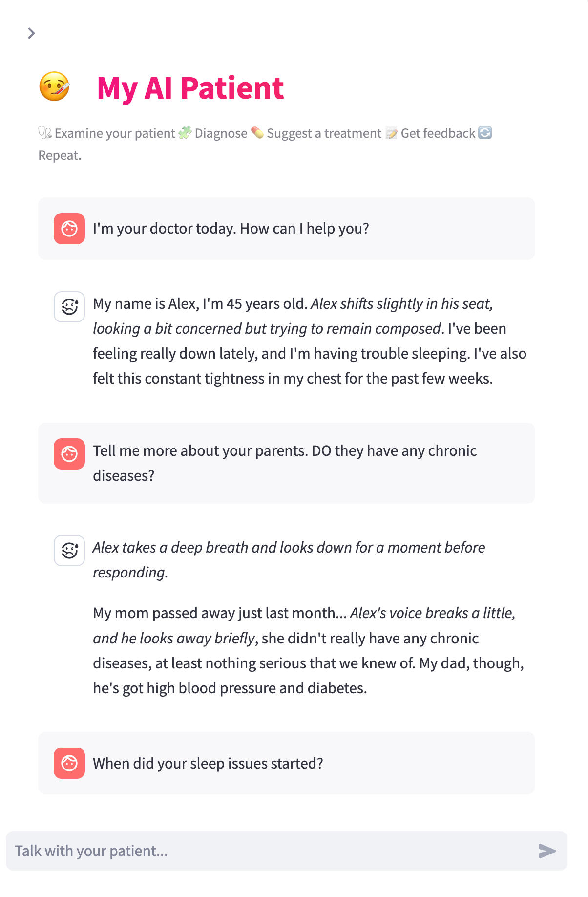 Each AI patient is based on a peer-reviewed medical case report and a unique patient persona.